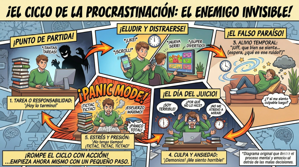 Lo sorprendente es que este hábito afecta tanto nuestra productividad como nuestra salud emocional. Cada vez que dejamos algo para después, el estrés se acumula, la ansiedad crece y la sensación de culpa nos persigue. Pero hay esperanza: comprendiendo cómo funciona nuestra mente, podemos transformar la procrastinación en acción efectiva.